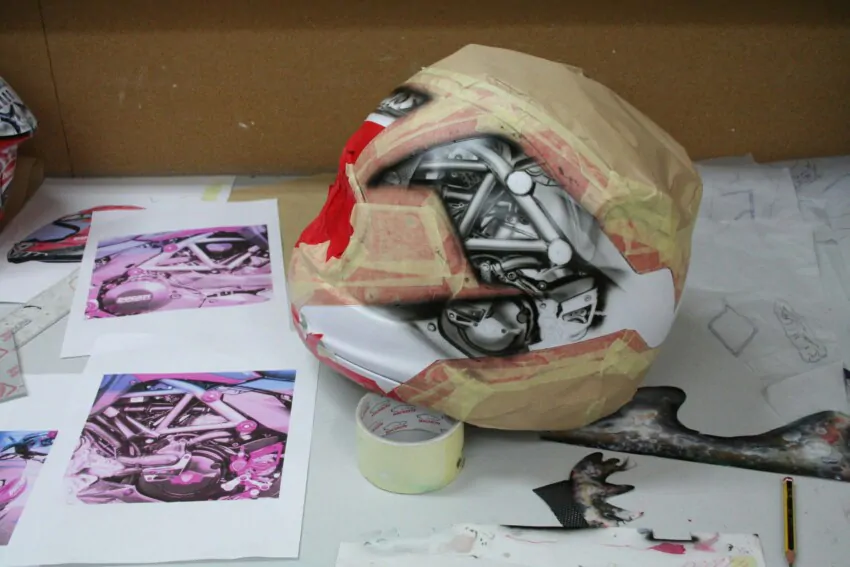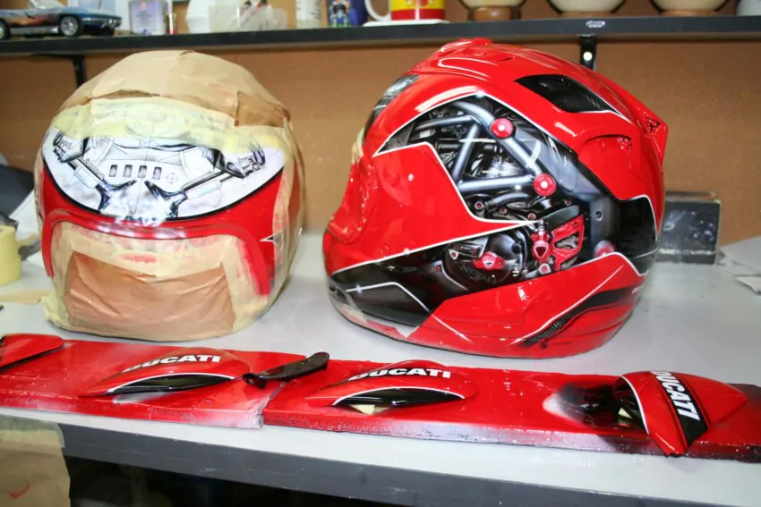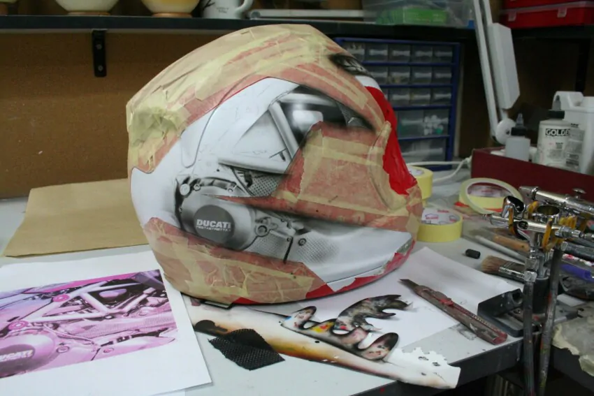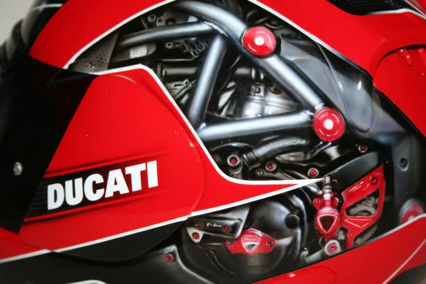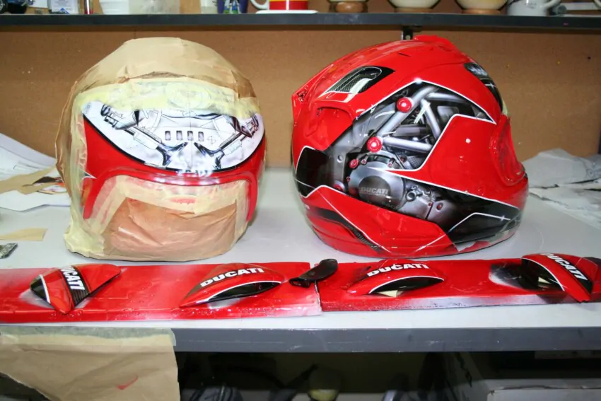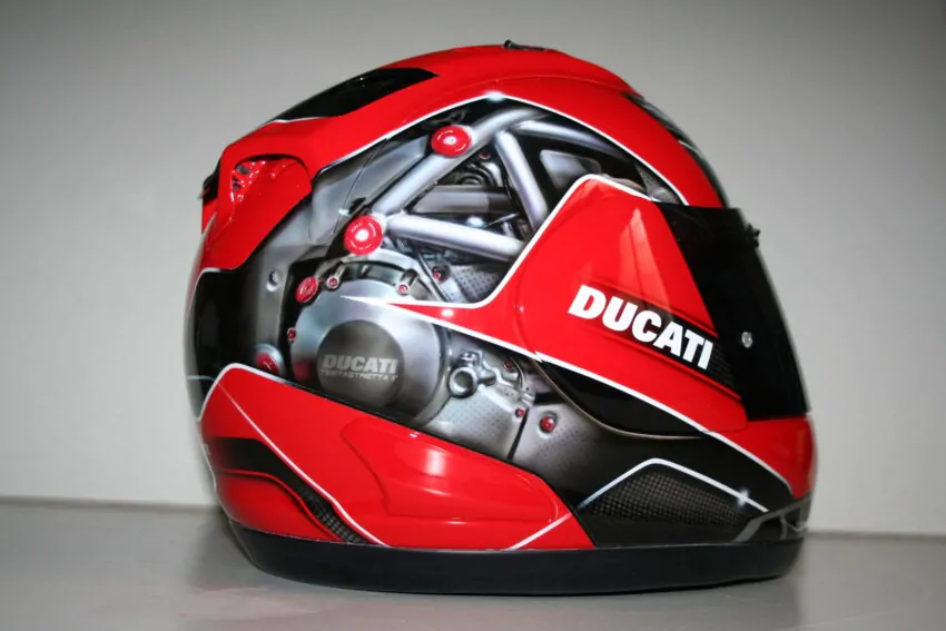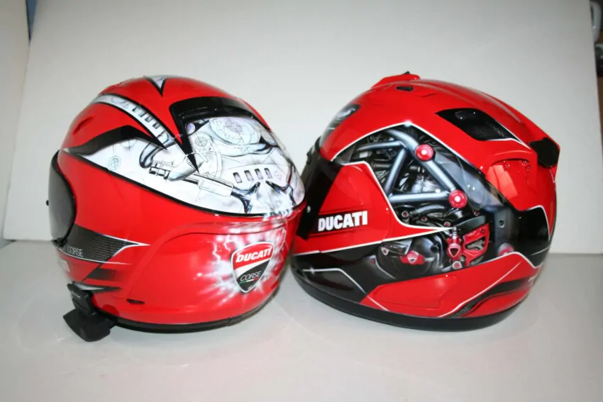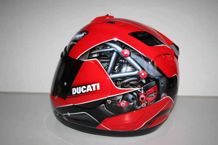 Aventura en cada detalle: Casco de moto Ducati único con aerografía por Rafa García Cano